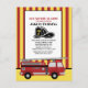 Red and yellow striped firetruck / firefighter birthday party invitation postcard