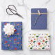 Elegant wrapping paper sheets display a beautiful pattern of red and yellow wildflowers. The delicate floral design features red and yellow wildflowers scattered across the surface. These vibrant wildflowers create a striking contrast against the elegant blue background of the wrapping paper sheets. The overall effect is a visually appealing and sophisticated design suitable for a variety of gift-wrapping occasions.