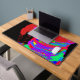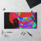 I painted my own uniquely original reddish-orange fox warrior princess with half human half fox features with reddish orange furry ears with purple, long, reddish-orange hair with colorful ribbons on the side in the shape of a butterfly, wrapped in a rainbow colored crochet type snood, and a multicolored dress made of necklaces and ribbons.
