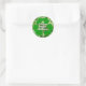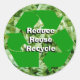 Sticky Reminder! It's a "green" message on this round template sticker with a green shredded, crinkled paper background. The text is centred within the green Mobius Loop recycle symbol. Keep this environmental message or fill in the template block with your words. Or click "Customize it" to select a font style, size and colour you prefer. The entire design is customizable.