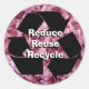 Stick it for awareness! You can promote a "green" message when you use this round template sticker with a pink shredded, crinkled paper background. The text is centred within the green Mobius Loop recycle symbol. Keep this environmental message or fill in the template block with your words. Or click "Customize it" to select a font style, size and colour you prefer. The entire design is customizable.