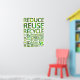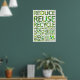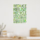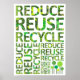 An abstract artwork of many interesting lines and shapes in various shades of green makes up the letters of this message, Reduce Reuse Recycle. This is a great poster to express your love of the environment and to spread the message to others.
