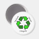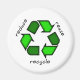 Reduce - Reuse - Recycle - white magnet with black text and green recycling symbol.