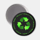 Black magnet with a green two toned recycling symbol surrounded by "Reduce - Reuse - Recycle" in repeating green text.