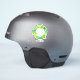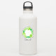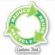 Green enviromental symbol, circle with arrows and the words reduce, reuse, recycle. Custom text.