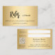 Un arrière - plan à l'allure fausse or, du texte noir. Au début : Ajoutez votre remise. date valide. Retour : Personnalisez et ajoutez votre nom d'entreprise, numéro de téléphone, courrier, adresse de site, code qr à votre site Web ou compte de médias sociaux.