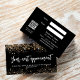 Arrière - plan noir décoré de parties scintillant faux or, brille. Retour : Personnalisez et ajoutez votre nom d'entreprise, numéro de téléphone, courrier, adresse de site, code qr à votre site Web ou compte de médias sociaux.