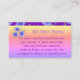 Fleur dans une foule de couleurs. Customisez ce violet féminin coloré fleuri de bleus et de carte de visite rose à votre goût. Le petit carré fleuri violet à l'avant et à l'arrière peut être changé en logo d'entreprise. L'arrière - plan violet foncé peut être personnalisé à n'importe quelle couleur personnalisée. Le texte peut tous être modifié pour convenir ou le texte peut être supprimé. Continuez à fleurir, et bonne chance avec votre aventure d'affaires.