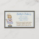 Carte de visite lunatique d'amusement fait dans les graphiques primitifs d'un pays, montrant une fille mignonne de boulanger dans le casquette de chef tenant un petit gâteau et une cuillère en bois. Un bon de style de coupe-circuit est du verso. Perfectionnez pour un magasin de boulangerie, le magasin de partie, ou un boulanger fait sur commande indépendant. Customisez les gisements des textes pour personnaliser pour vous-même ou votre magasin.