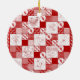 Redwork Stitched Flowers Quilt-RED CERAMIC ORNAMENT-An allover background print of stitched quilt squares. The colours are red and white. Each flower is individually stitched with digital thread. Assorted red and white designed squares fill in between the larger stitched squares. The larger squares are solid red, trimmed with digital red stitching. A beautiful botanical floral quilt for quilt lovers. The quilt is on the front side of the quilt only. The background is a solid red colour. Coordinating Zazzle party supplies and gifts are available. The paper cups are nine (9) oz in size. Sold in sets of eight (8) quantity.