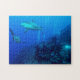Jigsaw puzzle showing a group of divers viewing the action during a shark feed on Osprey Reef about 200km off the coast of Australia in the Coral Sea.
