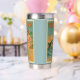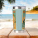 This reel beach is real salty! The sassy vintage inspired pin-up confidently handles the fishing pole while her big catch, a feisty shark, jumps out of the water. The scene is completed with palm trees, vintage car and lifeguard stand in the background. This cheeky twist on classic retro poster art will make you laugh. This fun coastal blue tumbler is insulated to keep your drink hot or cold. Perfect for the beach, fishing or running errands.