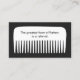 Design amusant et mémorable avec grand peigne blanc en arrière - plan noir. Une carte de recommandation super mignonne sous le déguisement d'un certificat cadeau pour les deux parties. Idéal pour tous ceux qui travaillent dans l'industrie de la beauté ou de la mode. Couleurs noir et blanc.
