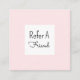 Carte de fidélité rose blanc avec Arrière - plan rose simple. Cette carte de référence élégante peut être utilisée pour salon de beauté et spa, maquillage de cheveux, coiffeur, services de manucure / pédicure, massothérapeute et de nombreux autres services. Consultez notre collection de magasins ci-dessous pour plus de produits avec ce design. Vous pouvez également modifier la couleur de l'arrière - plan lors de la modification de la conception.
