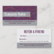 Carte de visite d'aiguillage des dentistes. carte de visite de référence personnalisé avec une promotion de référence pour récompenser vos clients pour avoir renvoyé leurs amis. Idéal pour le marketing de votre studio de yoga. Inscrivez dans votre propre promotion, vos avis de non-responsabilité et les renseignements sur votre entreprise.