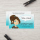 Rendez-vous ou parlez-en à un carte de visite avec une dame de bande dessinée qui recommande votre entreprise. Idéal pour toute entreprise avec une clientèle majoritairement féminine.
