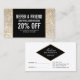 Coordonner avec le modèle de la Parties scintillant d'or Champagne et de la carte d'affaires Glamor d'ici 12 h 01. Une image festive d'arrière - plan parties scintillant or champagne offre un décor glamour à ce modèle de carte de référence personnalisable. Votre nom ou nom d'entreprise est élégamment stylisé dans une fausse plaque d'identification dorée pour un logo moderne sur le côté arrière. Personnalisez le texte pour votre propre promotion ou offre. Idéal pour les salons, les coiffeurs, les maquilleurs, les concepteurs de clous, les boutiques et plus encore. © 1201AM CREATIVE