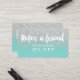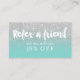 Refer a friend with this modern, stylish makeup referral card with modern hand lettering style brush typography in white on a faux silver glitter and turquoise robbin egg blue trendy and elegant background. If you need any customization, don't hesitate in contacting me