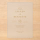 This elegant wedding invitation features a sophisticated and timeless design, perfect for a classic celebration. The layout is clean with an emphasis on refined typography that adds a touch of luxury to the overall look. A soft color palette of gold and cream creates a warm and inviting atmosphere, ideal for marking such a special occasion. The minimalist style ensures that the focus remains on the joyous event, making it suitable for couples who appreciate understated elegance in their wedding details.