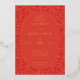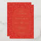 This elegant wedding invitation features a rich red background adorned with intricate, swirling patterns that add an air of sophistication and romance. The central oval frame highlights the text in a classic serif font, creating a timeless and formal appearance perfect for a special occasion. The color palette exudes warmth and celebration, making it ideal for couples looking to convey a sense of grandeur and joy on their big day. With its customizable layout, this design is versatile enough to suit various wedding themes while maintaining an overall luxurious feel.