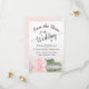 This wedding Save the Date card is romantic, elegant, classy, and beautiful. It features a photograph of a single long stemmed blush pink coloured rose reflecting in a pool of water with waves and ripples. The text is a fancy script calligraphy on a white background. The back features a lovely marbled pattern. Perfect way to let your friends and family know about your upcoming wedding.
