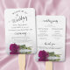 These beautiful wedding program fans are elegant, romantic, classy and tasteful. The design features a single long-stemmed cassis purple, magenta, or berry coloured rose lying on its side, reflecting in a pool of water with waves and ripples. The typography features lacy black script calligraphy, and there is room for details on the ceremony, the bridal party, and a short thank you.