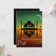 Illustration de la mosquée de nuit : Une mosquée et une silhouette de palmiers sur un arrière - plan de ciel nocturne avec la lune et les étoiles réfléchissant sur l'eau.