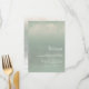 Ce menu moderne de réception de mariage est légèrement informel, chaleureux et personnalisé, et présente un design abstrait et aquarelle ressemblant à des reflets sur l'eau. Cet exemple présente une palette de couleurs dégradées allant du crème pâle au vert sauge doux. Personnalisez avec les initiales de la mariée et du marié, la date du mariage et les détails en utilisant le modèle fourni. Recherchez ID774 pour voir l'ensemble complet de correspondances et les options de couleurs supplémentaires.