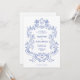 This elegant and luxe wedding invitation features a vintage line art frame with ornate baroque style. The design is blue on a simple white background. Modern script calligraphy and classic text, along with your initials or monogram, make this a classy yet up-to-date contemporary choice for your wedding.
