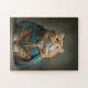 A charming portrait of a fluffy ginger cat dressed in a blue cloak with golden trim, gazing up with sweet curiosity. Soft studio tones and painterly details make this jigsaw relaxing to build and adorable to display—perfect for families, kids, and cat lovers. Choose your preferred size and piece count on Zazzle.