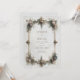 This piece presents a stunningly ornate aesthetic, featuring an intricate three-dimensional frame of sculpted gold filigree. The borders are lavishly adorned with luminous turquoise gemstones and delicate white pearls set into the metalwork. Nestled within the golden scrollwork are soft clusters of dusty pink and powder blue blossoms, accented by fine gold sprigs and tiny jeweled details. The entire arrangement is set against a pale, lightly textured ivory background, creating a vibe of timeless royal opulence and classical luxury. As a wedding invitation, this design serves as a magnificent introduction to a formal fairytale wedding, a grand cathedral ceremony, or a high-end vintage-themed celebration. It offers a majestic first impression that promises an event of incredible detail and sophisticated elegance. This detailed and regal imagery is perfectly suited for those seeking a blend of botanical beauty and jeweler-level craftsmanship.