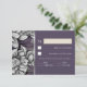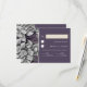 This RSVP card showcases a calming lilac backdrop adorned with delicate silver and soft gray floral illustrations on the left side, creating a natural, sophisticated vibe. The florals are framed by a slim metallic silver border, adding a sleek, polished finish. The overall design blends rustic charm with modern elegance, combining soft, natural tones with a refined, clean esthetic. Ideal for weddings with a focus on understated elegance and nature-inspired themes.