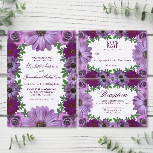 Regal Purple Floral Rehearsal Dinner Invitation
