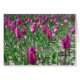 Purple tulip flowers against fresh green foliage is a stunning and vibrant sight. Purple often being regarded as the colour for Royalty, there is a certain grace amongst these flowers. Carefully planted all those months ago now splendid in their beauty and elegance. Purple, vibrant, colourful and very beautiful. Gorgeous for anyone who loves purple flowers and especially purple tulips. Customise for your own special message
