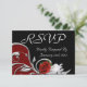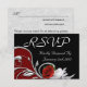 Red, black, and silver response card with menu selections.