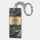Porte - clés chics de monogramme conçus avec un arrière - plan numérique de sembler de marbre en pierre noir et un emblème de monogramme coloré par or de luxe avec les initiales nommées que vous pouvez remplacer et personnaliser par vos propres lettres de nom dans le style. Toutes les textures et surfaces sont illustration conçue pour regarder comme la chose vraie une meilleure valeur. Fait un grand cadeau ou des cadeaux d'invité pour un événement spécial.