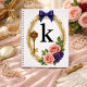 Unlock your imagination with this captivating Letter K monogram journal, where mystery meets romance in perfect harmony. The hardcover features ornate gold scrollwork embellished with pearl details and ivory lace, topped by an elegant navy blue satin bow that adds depth and sophisticated masculine appeal.