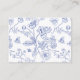 Regency Blue Vintage Chinoiserie Floral, wedding accommodations cards. Card template provides multiple template text lines in coordinating blue colour for your custom information.
