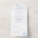 Regency Blue Leafy Monogram Crest Wedding All In One Invitation