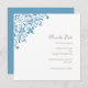 Chic and elegant regency french blue fleur de lis pattern wedding save the date design. Detailed fleur de lis corner pattern in french blue. Customise with your names and your wedding information in dark taupe lettering. Designed to match our Regency French Fleur de Lis Wedding Collection.