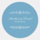 Add a touch of timeless Regency elegance to your wedding stationery with this blue and white sticker featuring classic typography and refined romantic details. Perfect for sealing envelopes, favor packaging, welcome bags, or menu accents, this design brings a graceful vintage charm to your celebration. Personalize the text to coordinate with your wedding theme and create a cohesive, sophisticated look across your entire suite.