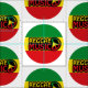 Reggae Music, reggae design with peace symbol and rasta fari flag colours.