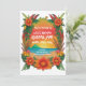 Colourful reggae party invitation with an island sunset surrounded by tropical flowers