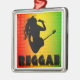 Reggae Rastaman © Sunny Mars Designs. Cool Rasta haut de gamme ornement carré avec la silhouette d'un Rastafarien chantant de la musique reggae et jouant de la guitare sur un arrière - plan abstrait aux couleurs jamaïcaines vertes, jaunes et rouges.
