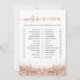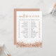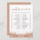 This bridal shower game features faux rose gold sequins and a glam font duo. Use this template to edit the fonts, font colour, and background colour to match your event needs. This game is perfect for your glam bridal shower at any time of year.