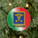 This custom Christmas ornament is decorated with the Registered Dietician shield. The reverse side is decorated with an image of Santa Claus carrying his bag of goodies, and can be customized with names, dates, etc.