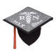 Designed with silver faux glitter sparkle background and a large white medical caduceus symbol on the centre. "RN" is in bold white block lettering on the sides of caduceus. Personalized with name in calligraphy script lettering on right diagonal area and custom graduation year on left side. Makes a great topper for a nursing student planning for graduation day!