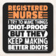 Funny Registered Nurse Sayings "Registered Nurse I Try To Make Things Idiot Proof But They Keep Making Better Idiots". Grab this Funny Registered Nurse design as a funny gifts for an awesome mom, dad or friend.