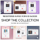 Simple and unique registered nurse healthcare logo name tag with a pattern of medical instrumental. Illustrated and designed by Patricia Alvarez.