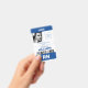 The front side features a custom photo and hospital logo, with hospital name and location, name of the person, barcode and RN, all can be changed and customized.